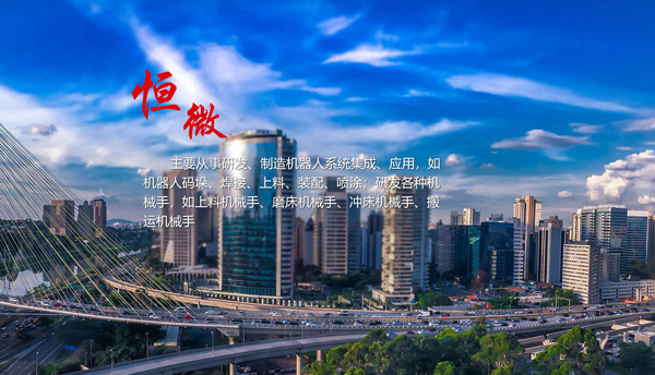 恒微主要从事研发、制造机器人系统集成、应用,如机器人码垛、焊接、上料、装配、喷涂;研发各种机械手,如上料机械手、磨床机械手、冲床机械手、搬运机械手;并客户提高行业解决方案,工厂整线系统整合,如全自动包装生产线,同时可以客户研制、生产各种自动化非标设备,如湿水牛皮纸全自动封箱机、厚度检测设备、自动循环过滤水箱等等。应用领域涉及石油、化工、电力、冶金、轻纺、食品、医药、环保等;产品技术服务覆盖全国各地。