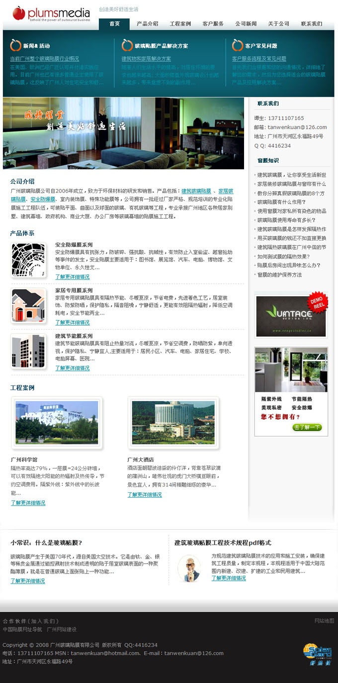 网站名称:广州玻璃贴膜有限公司网址:http://www.020windowfilm.com完成时间:2009-01-08我们对该公司的网站进行重新设计及内容布局,并且跟据该公司的行业内容,对网站进行了的搜索引擎优化。让网页内容更有利于搜索