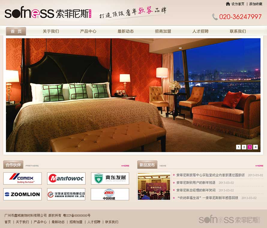项目名称:鑫域装饰材料网站建设签定日期:2013年2月28日网址:http://www.sofness.com/广州市鑫域装饰材料有限公司成立于2008年,是一家集研发、生产、销售软包移门、床体靠背、背景墙等软体材料的综合性公司。公司技术力